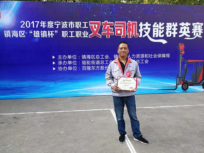 百隆东方十分重视对员工操作技术技能的培训与培养,各分公司不仅有完备的系统培训体系,且通过不同形式、不同工种的操作技术比武、操作运动会、小指标劳动竞赛等活动树立标杆、培养能手,并以身作则将培养工匠精神和氛围辐射到企业所在社区各企业,共同提升员工劳动技能。2017年11月2日,百隆东方出资与政府相关部门共同承办了“2017年度宁波市职工技能群英赛/镇海区“雄镇杯”职工职业技能群英赛叉车司机比赛”活动。百隆东方员工叉车司机许乃潮在比赛中沉着稳定、技术娴熟地完成了所有规定动作,以用时58秒,总分92分的成绩勇夺大赛第一名。