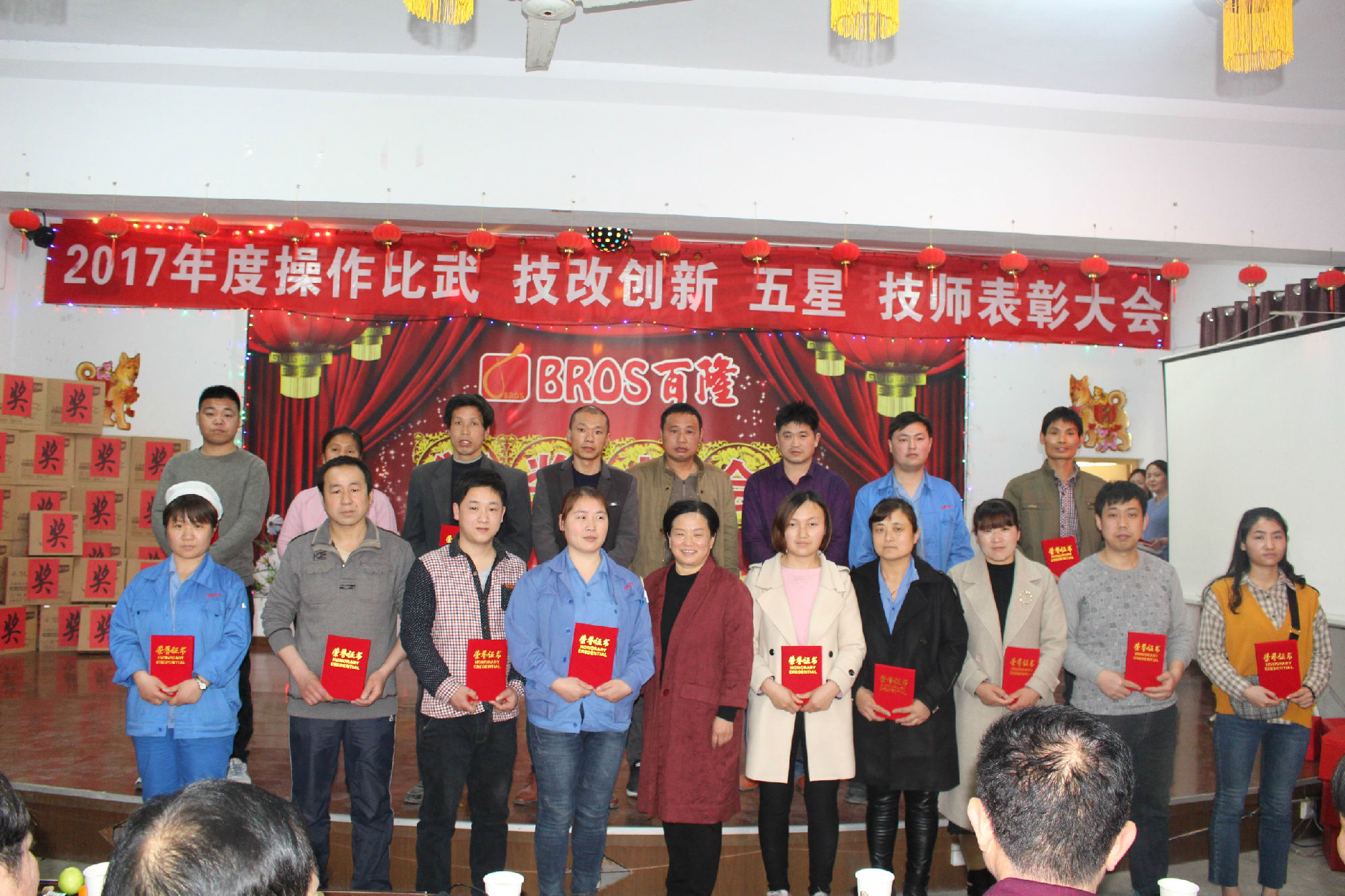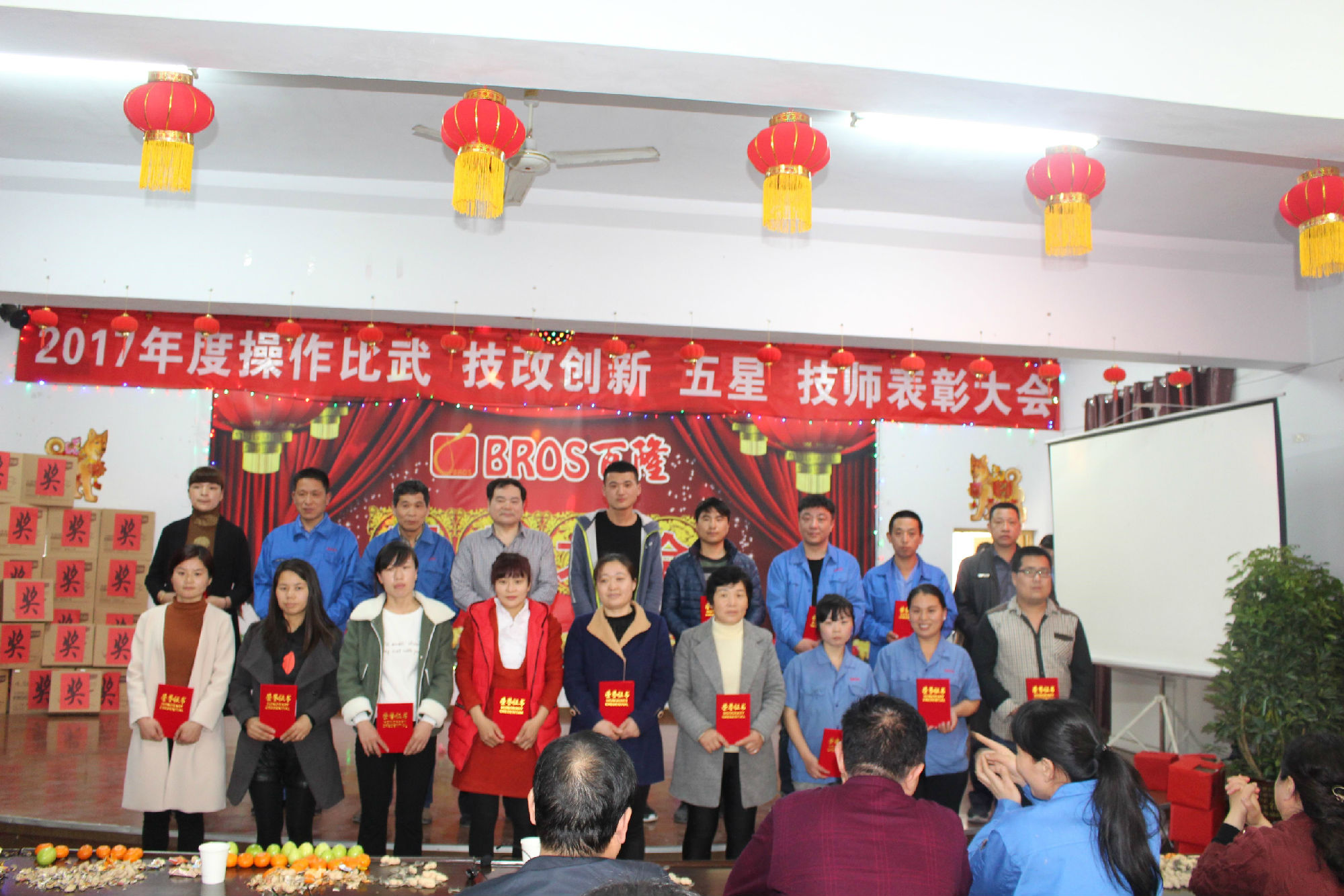 百隆旗下曹县百隆纺织有限公司多功能厅,欢歌笑语,音乐激扬,公司2017年度总结暨操作能手、创新能手、五星员工、新匠技师表彰大会渐入佳境。