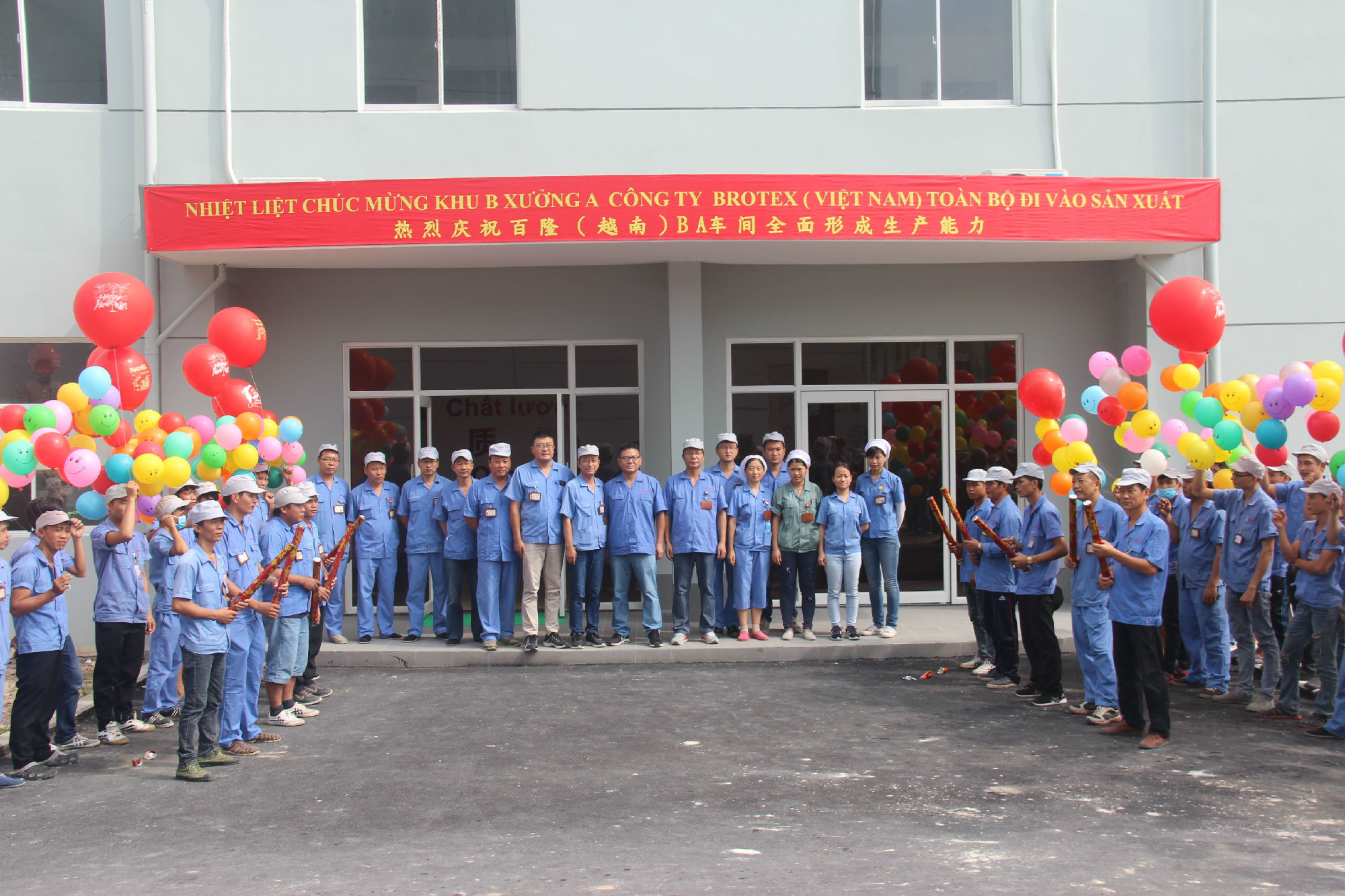2018年06月28日 百隆(越南)B区B-A10万锭大型车间全面建成投产。