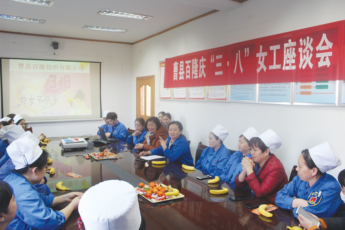 2019年3月6日,在第109个“三八”国际妇女节来临之际,曹县百隆工厂召开了“建功新时代 巾帼展风采”庆“三八”女职工庆功座谈会,来自不同岗位的优秀女职工代表参加了座谈会。