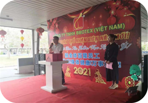 2021年的春节,在全球新冠疫情仍在全球肆虐的当下,百隆(越南)全体中方人员仍不能返回家乡与家人团聚,坚守在越南与全体员工一起欢度佳节。他们深情地表示:我们虽见不到家乡的瑞雪,但我们依然要让大红灯笼在越南这个第二故乡高高挂起。