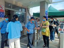 图为:员工上班自觉接受测温、亮码、戴口罩检查